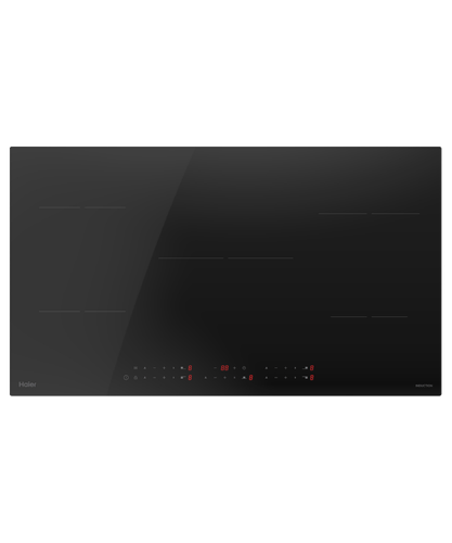 The sleek black aesthetic of this cooktop matches the wider Haier family of appliances, pairing well with a black glass wall oven.