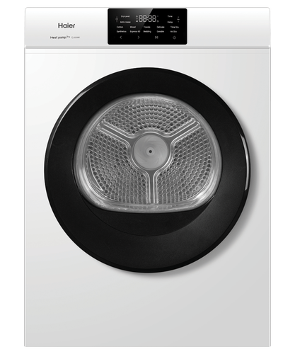 Designed for flexible placement, our first slimline dryer easily fits into shallow cabinetry and compact spaces. It features a dark touch-control panel set against a white exterior, complementing any Haier washing machine.